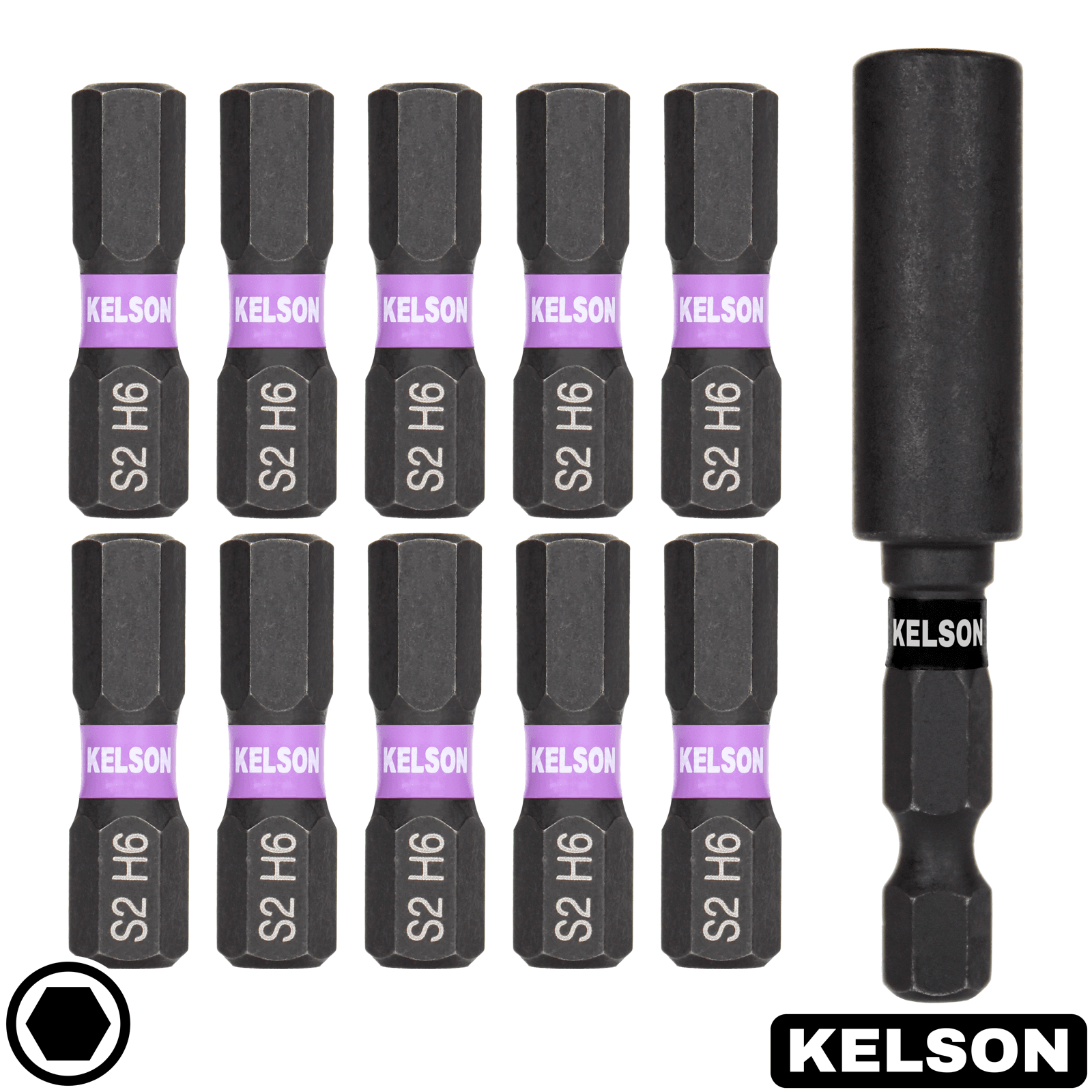 10 x 6mm Hex Drive 25mm Impact Screwdriver Bits With 60mm Magnetic Bit Holder