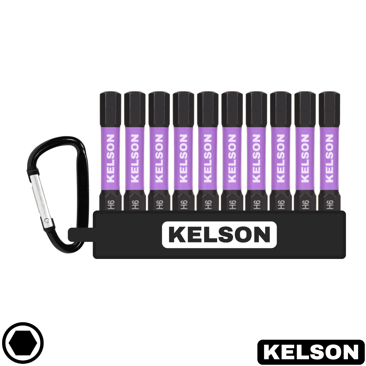 10 x 6mm Hex Impact Screwdriver Bit Set 50mm Length.