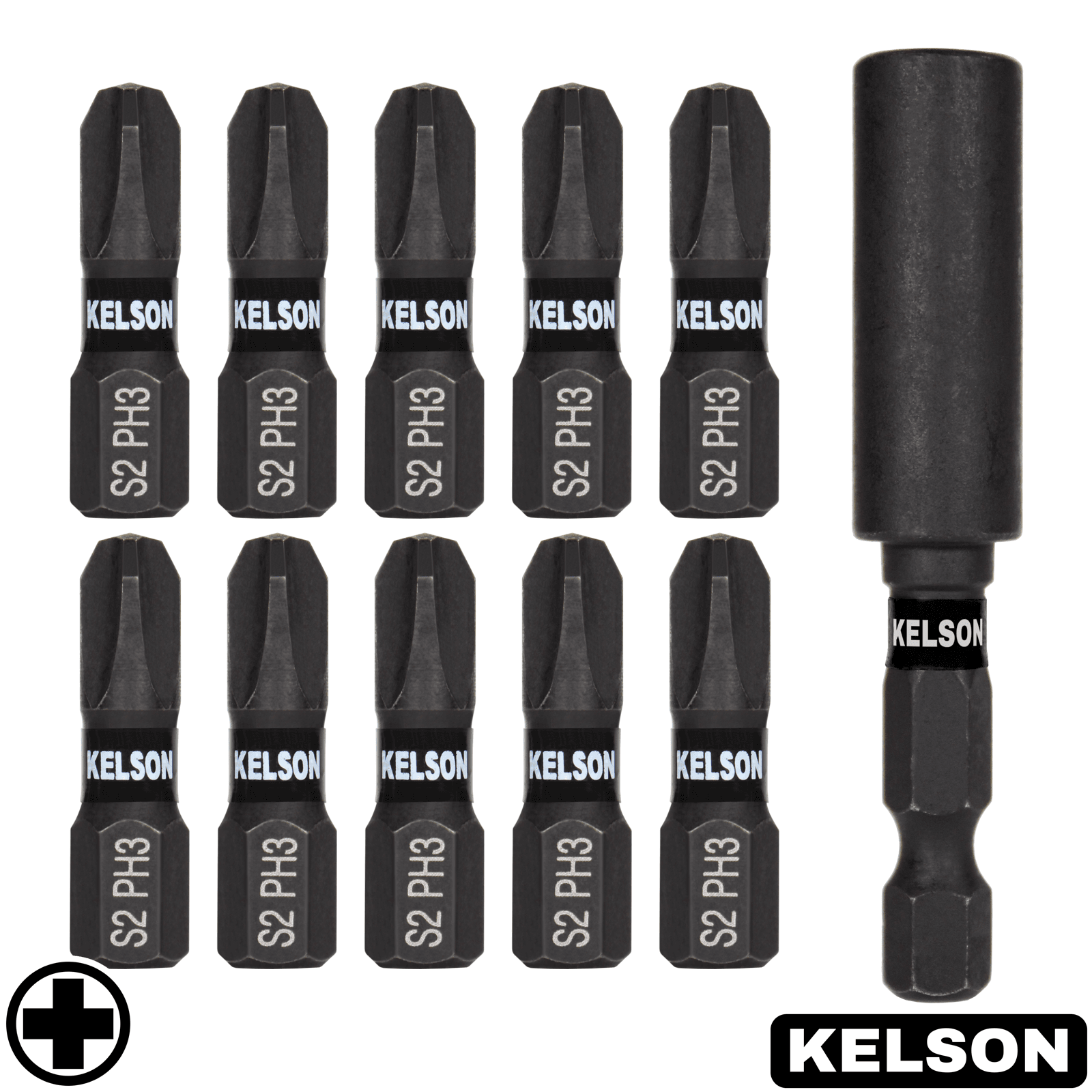 Set contains: 10 x PH3 25mm Bits, 1 x 60mm Magnetic Bit Holder