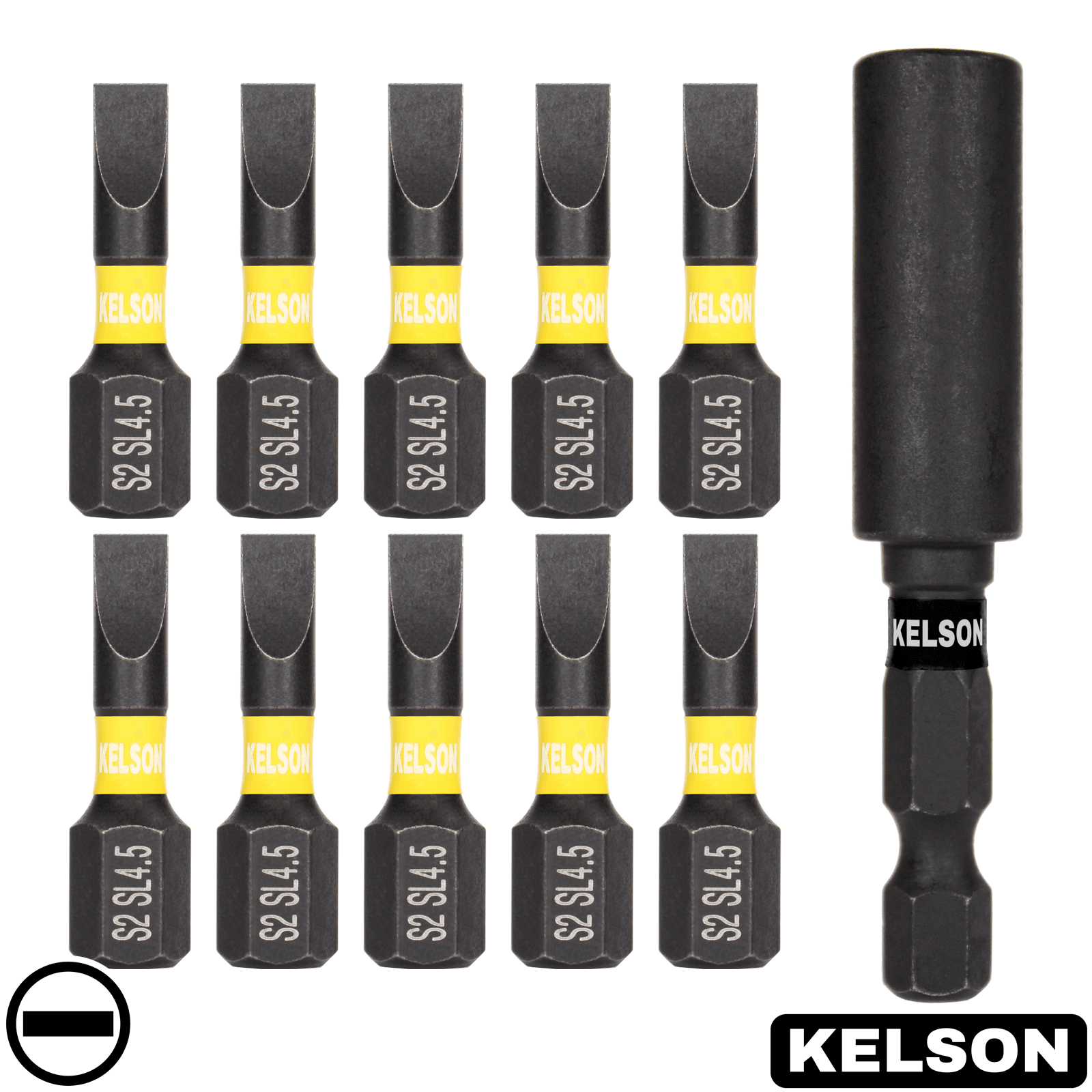 10 x 4.5mm Slot Flat-Head 25mm Impact Screwdriver Bits With 60mm Magnetic Bit Holder