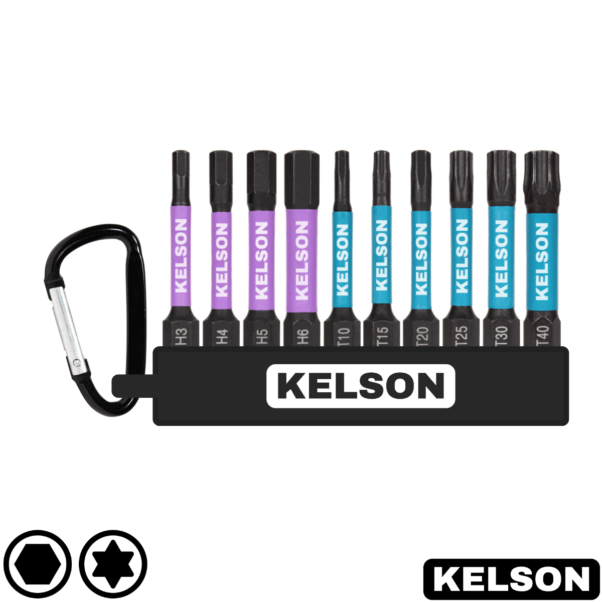 10 x Hex & Star Drive Impact Screwdriver Bits With Storage Clip 50mm Length.