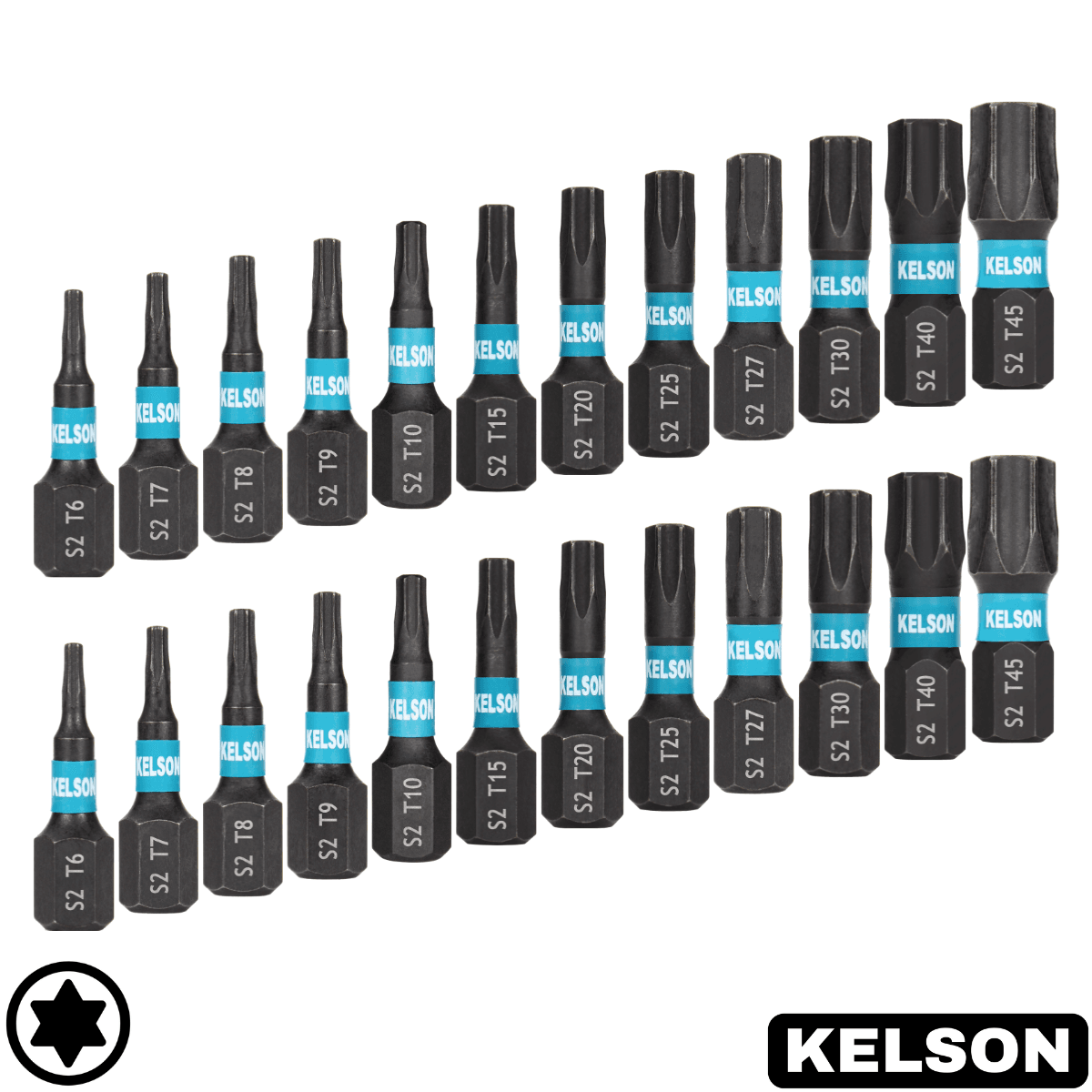 Set contains: 2 x Each 25mm: T6, T7, T8, T9, T10, T15, T20, T25, T27, T30, T40, T45