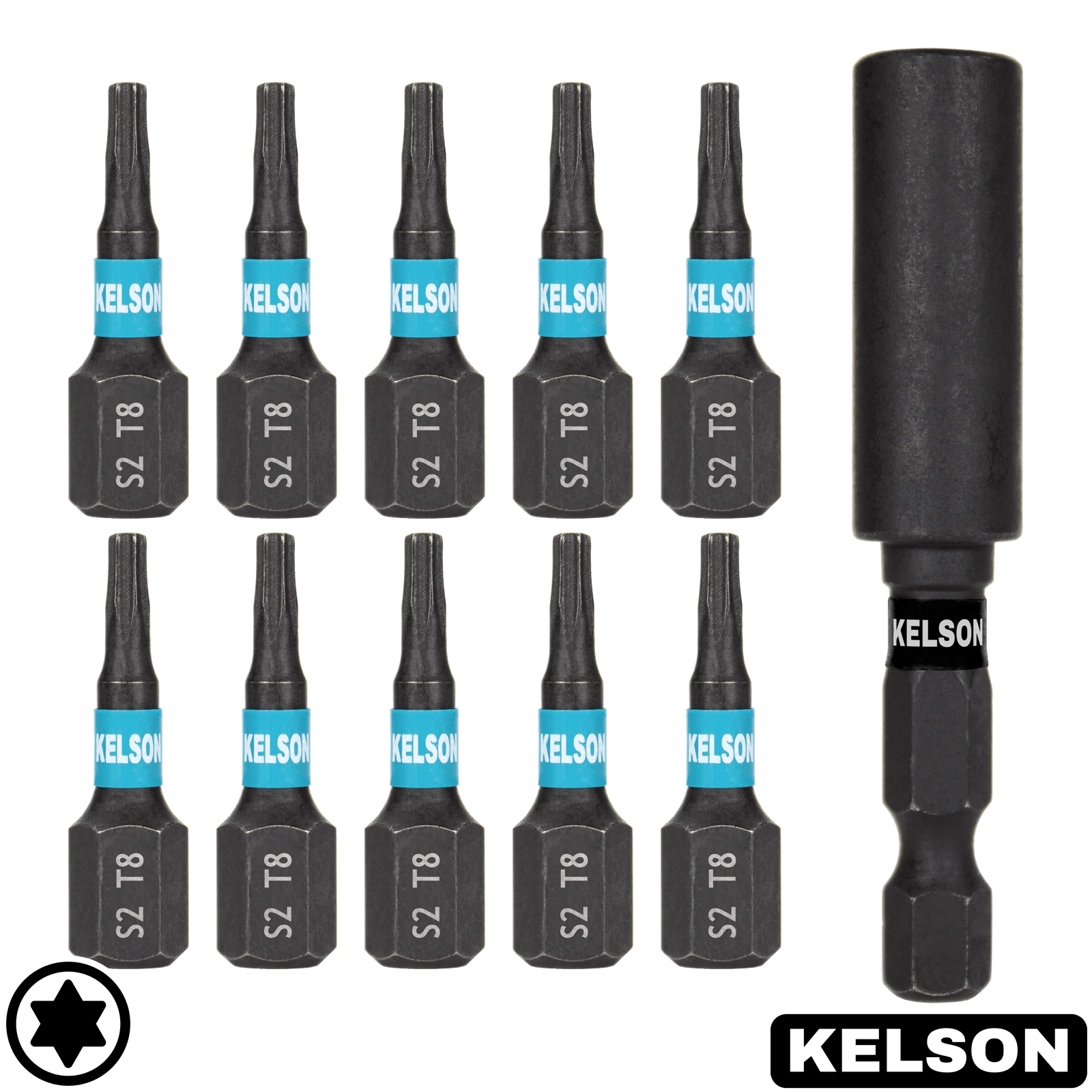 10pcs T8 25mm Impact Screwdriver Bits With 60mm Bit Holder.
